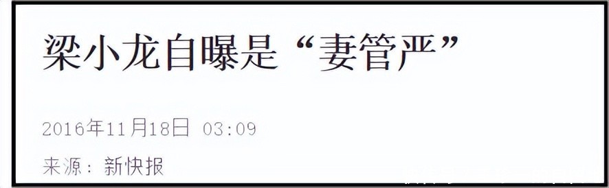 在上节目时,梁小龙更是坦言自己是“妻管严”,在家最怕老婆和丈母娘。