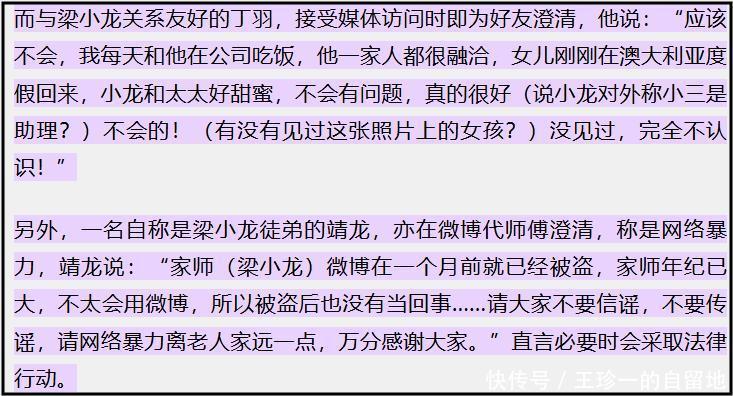 在梁小龙回应之前,他的好友丁羽就帮他辟谣了。