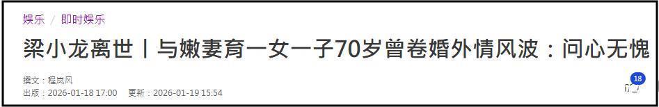 值得一提的是,在梁小龙去世后,很多自媒体连篇累牍的报道梁小龙曾经婚内出轨,但他们并没有报道后续。